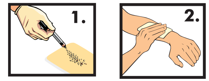 - Okside Rejenere Selüloz Tampon ambalajı açılır. Enjektör içindeki Ankaferd solüsyonunu ambalaj kabı içinde tamponun her tarafına eșit miktarda püskürtülmelidir. 1-1.5 dakika Okside Rejenere Selüloz Tampon’un solüsyonu emmesini beklenmelidir.